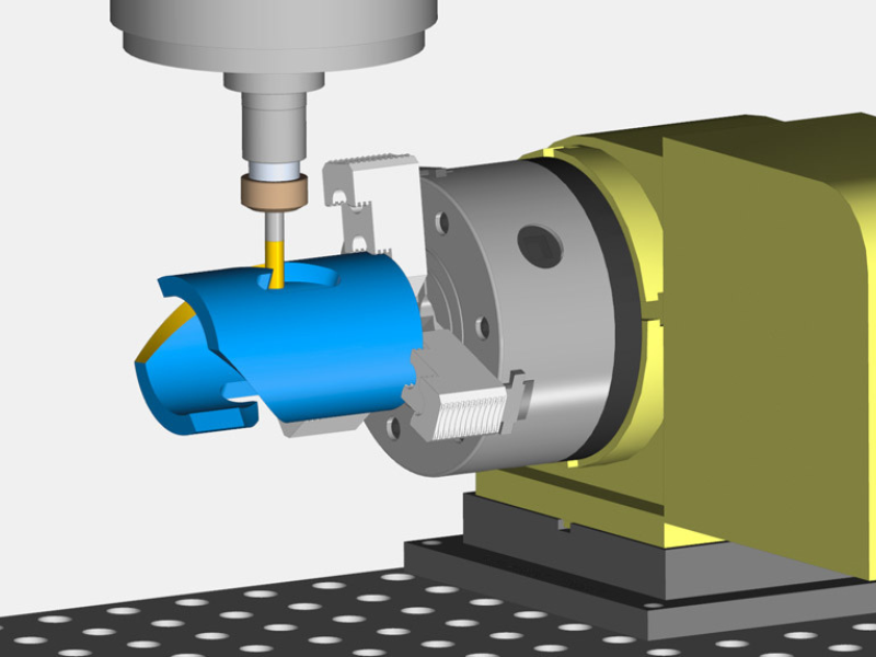 I cicli SolidMill possono essere utilizzati con uno, due o tre assi di rotazione per orientare il pezzo prima della lavorazione, con una gestione automatica degli assi in base alla configurazione macchina.